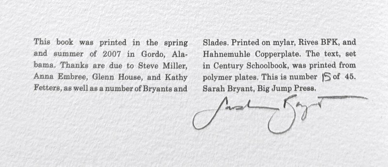 CUTAWAY - Artist's Book by ALABAMA PRINTER SARAH BRYANT Big Jump Press 1/45 2007